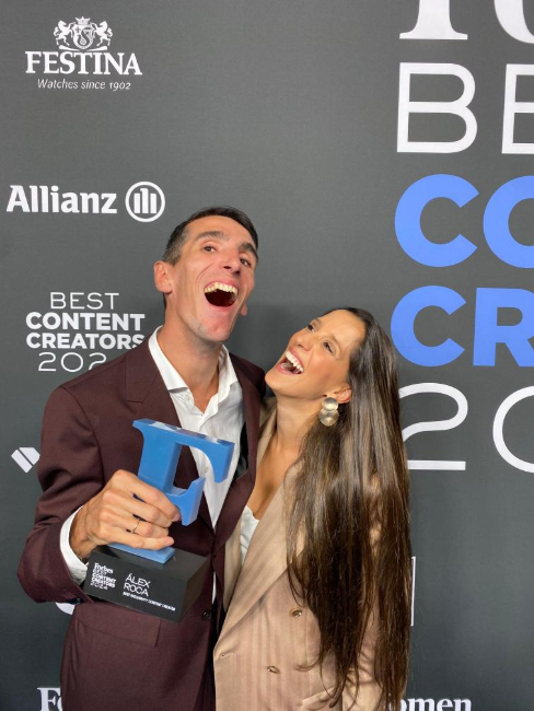 Àlex Roca amb la seva dona Maria del Carme recollint un premi // Foto: Àlex Roca (cedida)